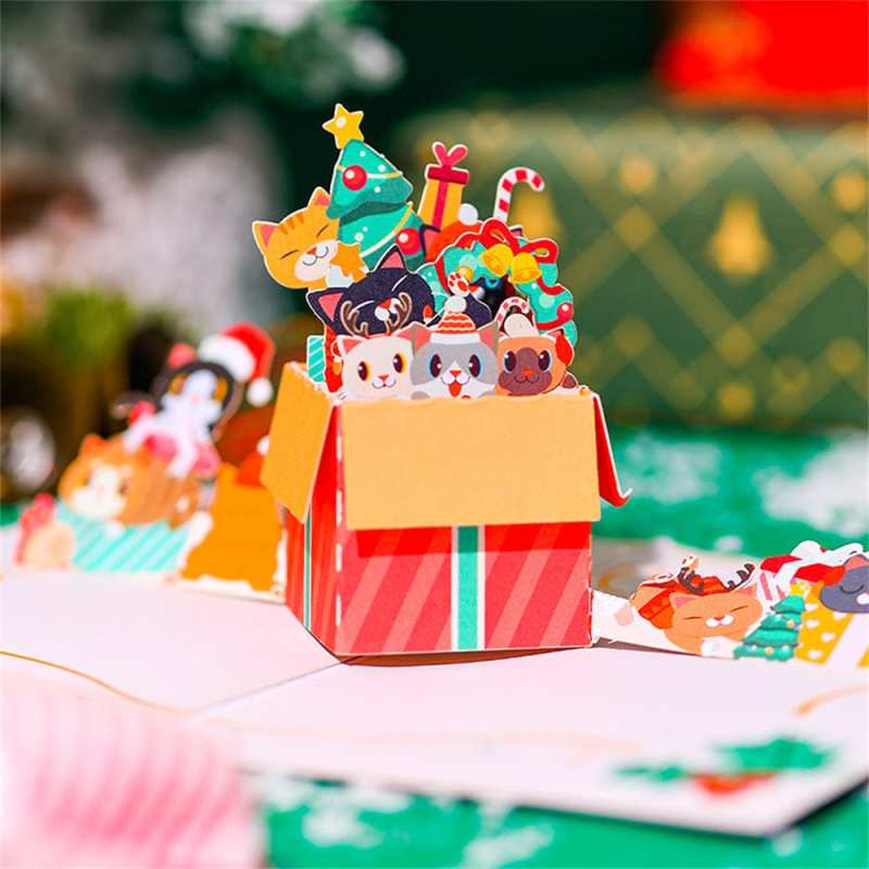 Weihnachts-3d-pop-up-karte, Katzen-grußkarte